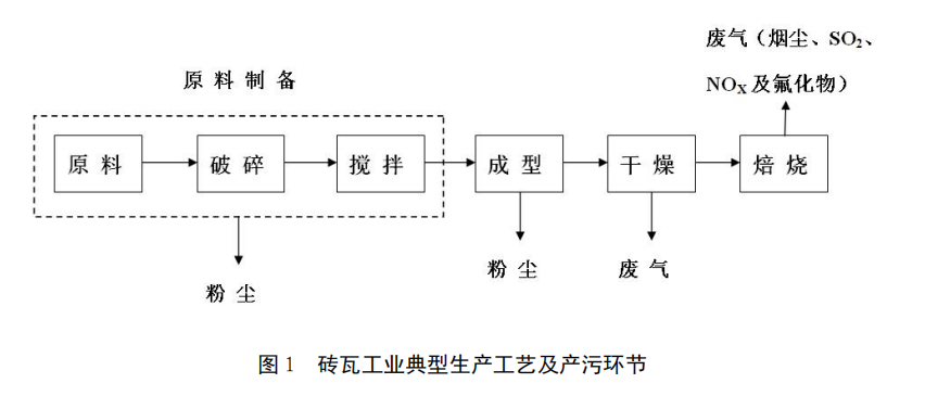 圖 1 磚瓦工業典型生產工藝及產污環節