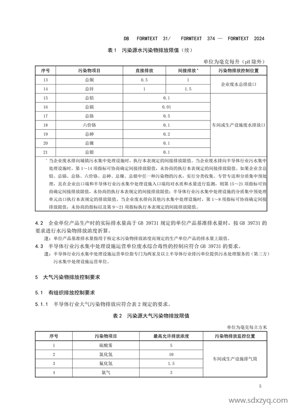 經(jīng)上海市人民政府批準,《半導體行業(yè)污染物排放標準》(DB31/374-2024)為上海市地方污染物排放標準,現(xiàn)予以發(fā)布。2024年5月1日起實施。