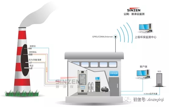其運(yùn)行原理是通過(guò)加熱抽取法(抽取冷凝法)將煙道中氣體取出并輸送到預(yù)處理單元,預(yù)處理單元將煙道中的氣體經(jīng)預(yù)處理后送入分析儀表。通過(guò)在線氣體分析儀表(煙氣分析儀)對(duì)煙氣中多種污染物進(jìn)行連續(xù)監(jiān)測(cè),將測(cè)量數(shù)據(jù)顯示在儀表上,最后通過(guò)環(huán)保數(shù)采儀或VPN將監(jiān)測(cè)數(shù)據(jù)實(shí)時(shí)傳到環(huán)保監(jiān)控網(wǎng)絡(luò)。