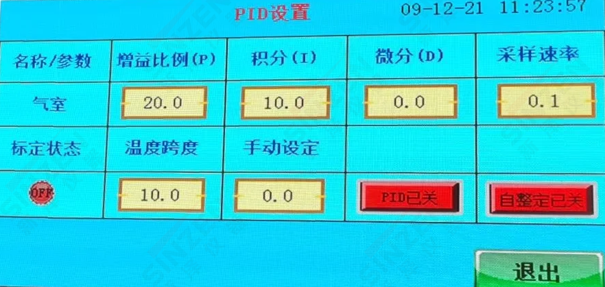 溫度PID自整定畫面應(yīng)該是PID已關(guān)按鍵變成綠色按健,PID已開為正常狀態(tài)。當(dāng)溫度到達(dá)180度設(shè)置值后,需要手動(dòng)點(diǎn)擊一下自整定已關(guān)按鍵,變成綠色,自整定已開,經(jīng)過(guò)一分鐘后自動(dòng)恢復(fù)紅色狀態(tài)。